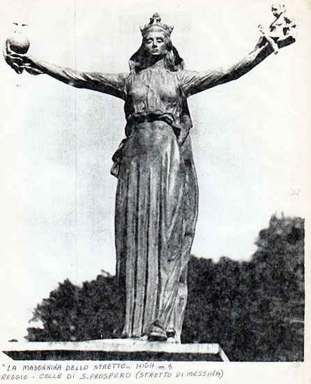 bronze statue standing 18' high installed in 1939 and located in the Stretto di Messina, overlooking Messina's popular shipping waterway, Sicily, Italy